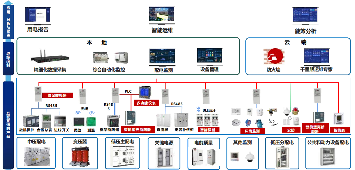智能配電監(jiān)測系統(tǒng)對配電數(shù)據(jù)集中采集、存儲和遠(yuǎn)程管理,實(shí)現(xiàn)配電的智能化管理運(yùn)維,同時(shí)對各級能耗進(jìn)行在線監(jiān)測和統(tǒng)計(jì),提供用能數(shù)據(jù)分析等服務(wù),保障安全、可靠、科學(xué)、經(jīng)濟(jì)、綠色用電。